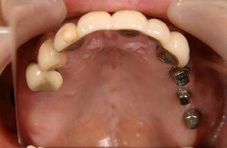 最終かぶせ物(メタルボンドポーセレン)を装着した口腔内写真