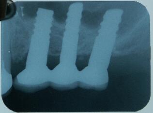 ・再結晶化HAコーティング施されたインプラントフィクスチャーを使用したため自家骨の移植や人 工骨の添加を行わないで直接埋入