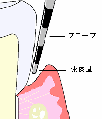 この歯周ポケットの深さをプローブと呼ばれる器具を使用して測る事により、それぞれの歯の歯周病の進行具合がわかります。